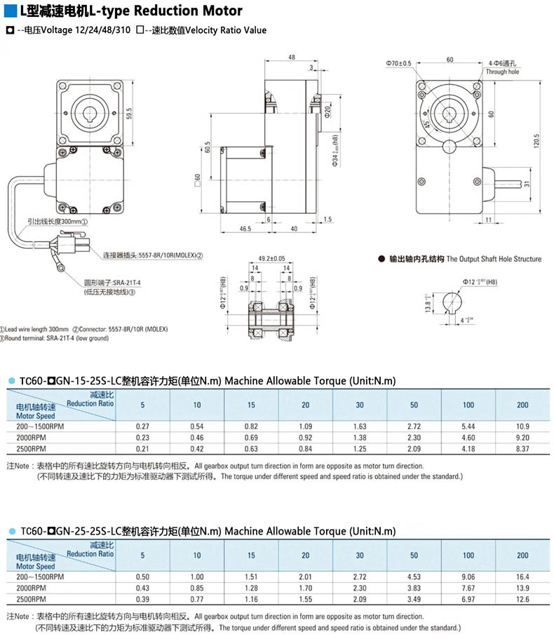 電機名稱:60系列L型直流無刷減速電機